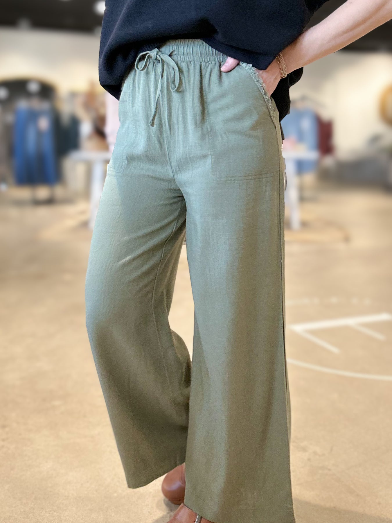 Effortlessly chic and perfectly comfortable, the Adley Pants are your new go-to for relaxed, everyday style. Crafted from lightweight linen in a versatile olive green, they feature a front drawstring for a customizable, flattering fit. Whether you’re running errands, lounging at home, or styling them for a casual outing, these pants are as easy to wear as they are stylish.
