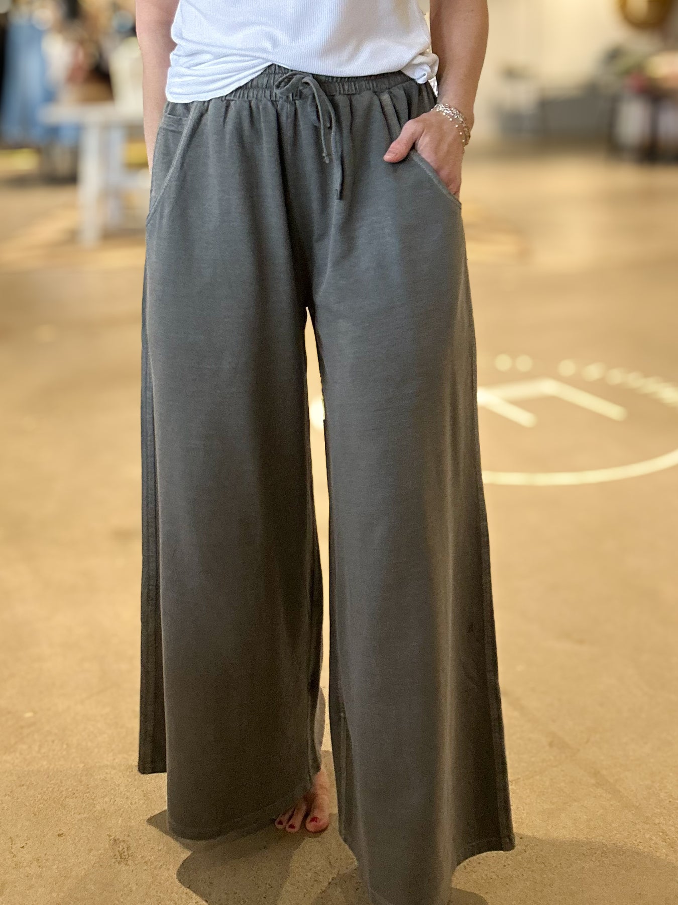 - Women's French Terry Enzyme Washed Wide Leg Pants