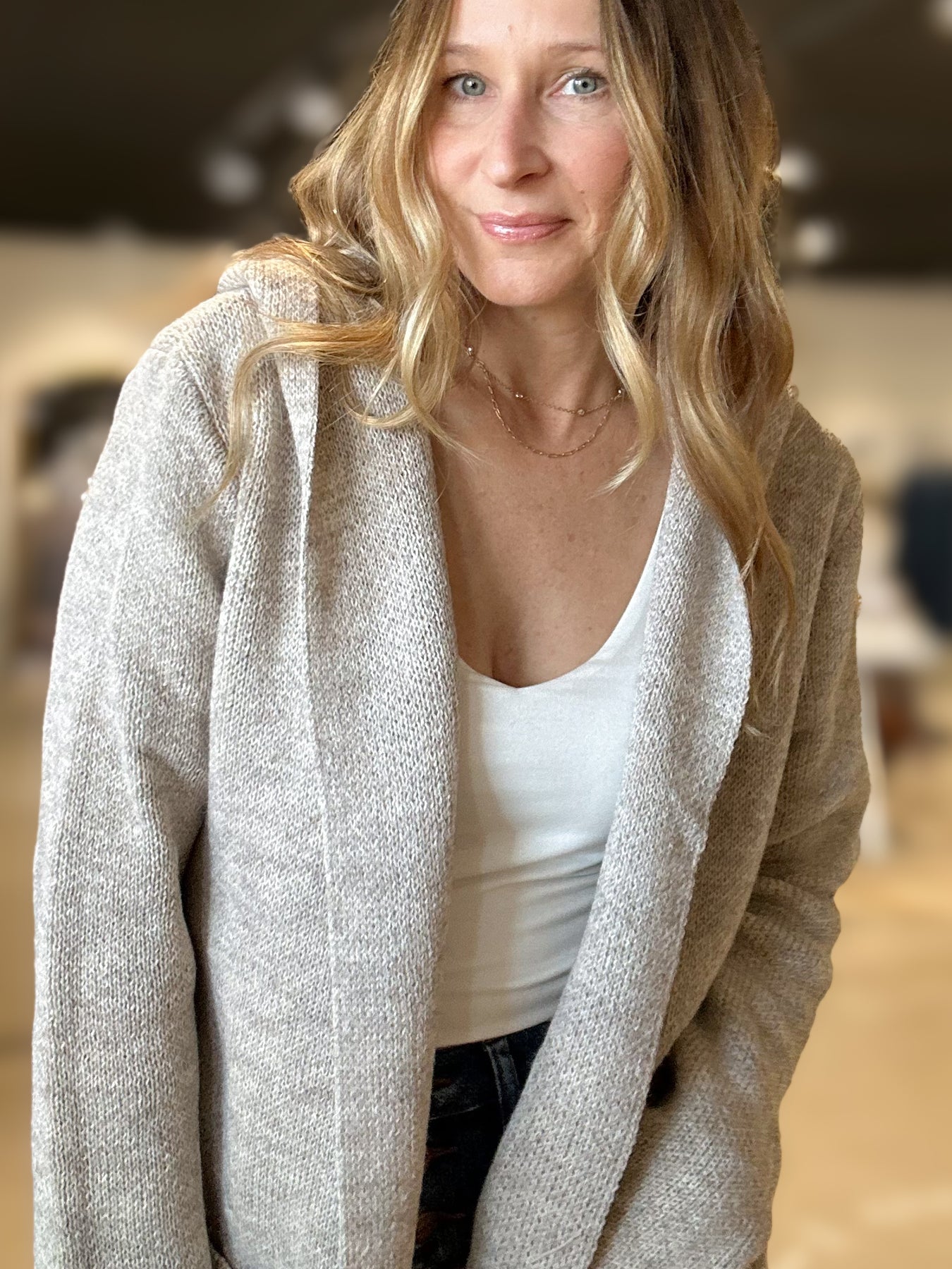 Stay warm and stylish with our Quinn Hooded Cardigan. Soft, lightweight, and relaxed, it’s perfect for layering over your favorite tees, tanks, or long sleeves. The hood adds a casual, laid-back vibe, while the long silhouette keeps you cozy on crisp mornings, errands, or weekend hangouts.