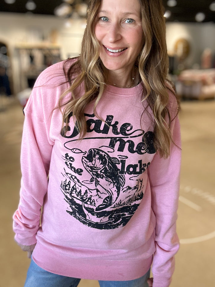 Reel in some summertime fun with this vintage-inspired Take Me To The Lake Graphic Sweatshirt. Perfect for fishing lovers, this sweatshirt adds a touch of nostalgia to your wardrobe. Stay cool and comfortable while showing off your love for the lake!